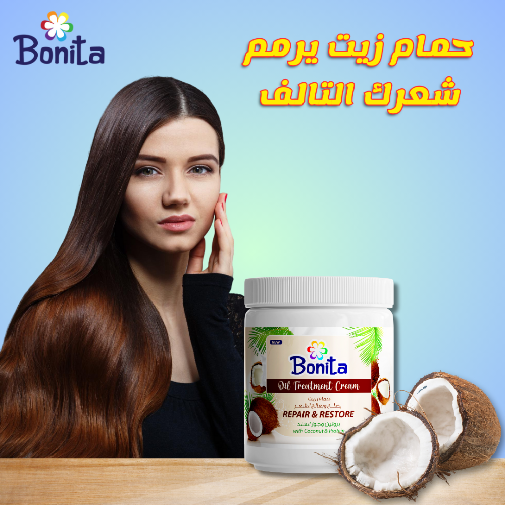 امنحي شعرك لحظة عناية حقيقية مع حمام زيت بونيتا الغني بخلاصة جوز الهند الطبيعي والبروتين المعالج، لتعيدي إليه الحيوية واللمعان من أول استخدام.